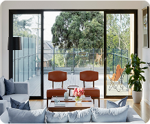Панорамные окна в пол. Максимально открывают вид и дают больше естественного света. Часто комплектуются закалённым стеклом или триплексом для повышенной защиты, тёплым дистанционным рамком и энергосберегающим покрытием. Подходят для террас, гостиных и выходов в сад.